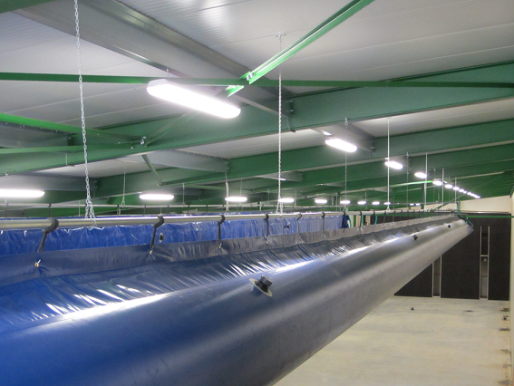 充气气囊悬挂于一条挂轴下方。仓储木箱可以轻松的摆放成型,当两侧木箱均摆放到位后,气囊充气,干燥或降温阶段可开始进行,下一张图片显示了气囊充气后的情况。